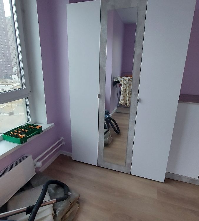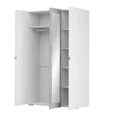 шкаф хороший. цвет чисто белый и вставка пол серый бетон. зеркала качественные.
