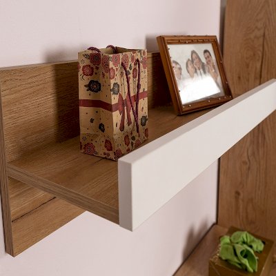 Лаконичная полка с ограничителем дополнит интерьер. Полочки для малыша должны быть размещены не очень высоко, так, чтобы он мог дотянуться до содержимого с невысокого стула или своей кровати. Для подростков же, полки могут располагаться на любой высоте, в соответствии с желанием хозяина комнаты.