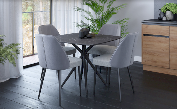 Уникальная конструкция ножек визуально облегчает конструкцию и позволяет с комфортом расположиться за столом.
