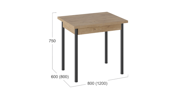 Длина разложенного столика, мм 1200