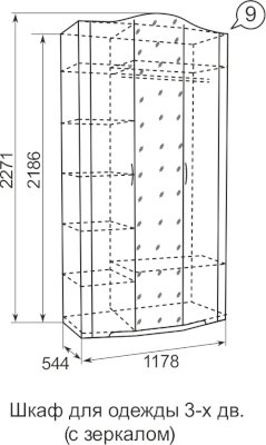 Шкаф для одежды 3-х дверный (с зеркалом) №9
