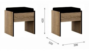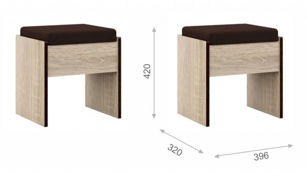 Пуф - украшение и функциональный предмет современного интерьера, который облагораживает помещение, делает его изящным и комфортабельным. Кромка цвета венге подчеркивают древесную текстуру и рисунок светлого дуба сонома, придает эффектный вид. Сиденье мягкое, обито экокожей. Идеально дополняет туалетный столик и другие модули системы Эшли.
