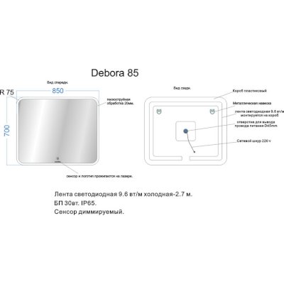 Светодиодное зеркало Debora (Veneciana) - за 17 664 руб. в Бердянске. Купите на сайте berdyansk.onlinemarketmebeli.ru или по телефону 8(800)505-30-63 уже сегодня! Уточнить наличие, комплектацию, актуальную цену можно бесплатно у менеджера ежедневно. Закажите Светодиодное зеркало Debora (Veneciana) до конца акции! Доступна покупка в кредит, рассрочку. Доставим со склада или на заказ.