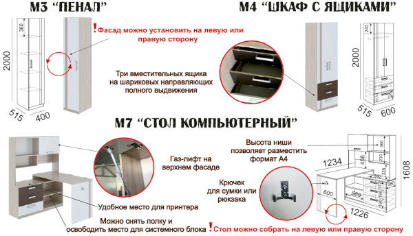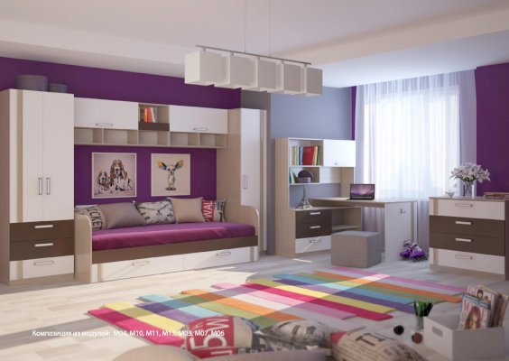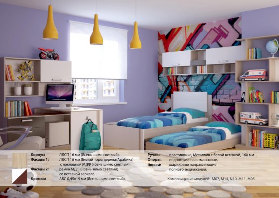 - Есть модули для функционального обустройства комнаты двоих детей.