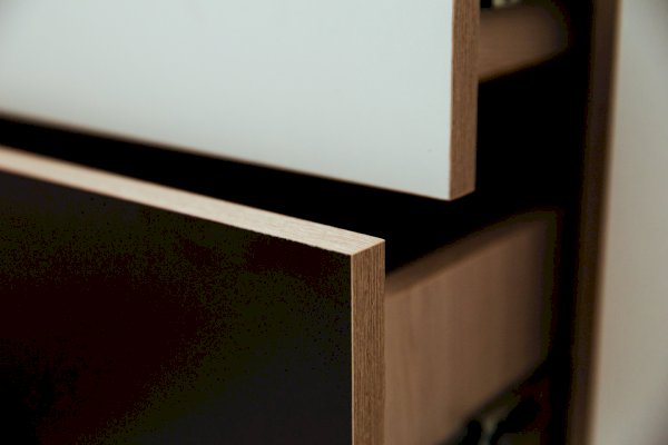 - Фасады обрамлены цветной кромкой Ясень шимо светлый.