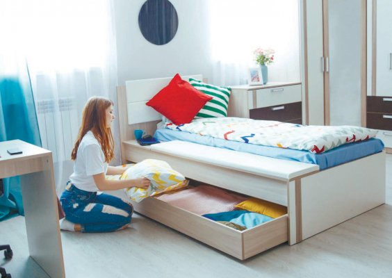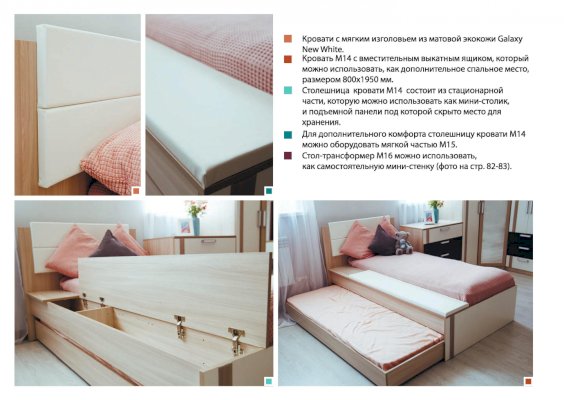 - Необычная кровать М14 со столешницей и большим выкатным ящиком.