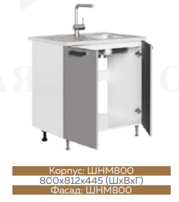 ШНМ1Д600 Шкаф нижний под мойку Графит софт/Белый глянец холодный