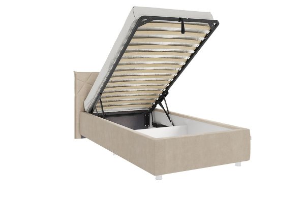 Модель данной односпальной кровати позволяет легко ее адаптировать в дизайн спальни, при этом создавая уют комнаты.