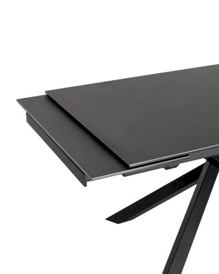 Обеденный стол Альянс с раскладной столешницей. Прямоугольная столешница выполнена из цельной керамики. Материал долговечен, устойчив к термическим и механическим воздействиям. При необходимости длину стола можно увеличить за счет спрятанных по бокам раздвижных элементов. Раздвижной механизм прост в использовании и не требует много времени для сборки. Металлические ножки надёжно удерживают всю конструкцию и придают столу оригинальный вид. Обеденный стол Альянс впишется в любой интерьер в современном стиле и станет украшением кухни и обеденной зоны.