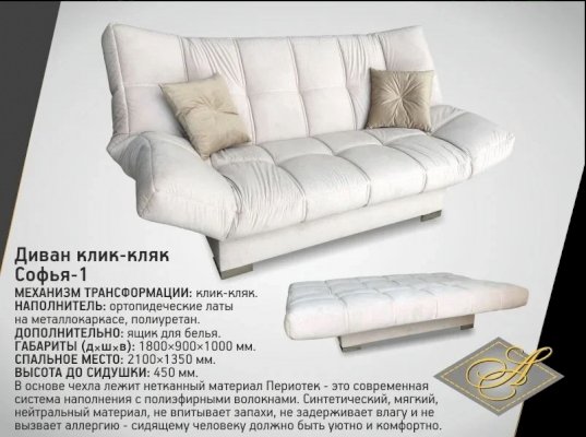 Клик Кляк Софья-1 (Асмана) - за 51 682 руб. в Бердянске. Купите на сайте berdyansk.onlinemarketmebeli.ru или по телефону 8(800)505-30-63 уже сегодня! Уточнить наличие, комплектацию, актуальную цену можно бесплатно у менеджера ежедневно. Закажите Клик Кляк Софья-1 (Асмана) до конца акции! Доступна покупка в кредит, рассрочку. Доставим со склада или на заказ.
