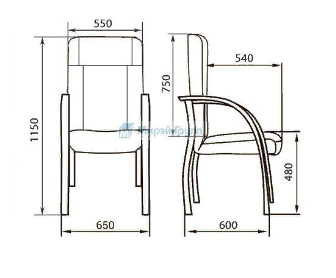 Кресло с высокой спинкой на деревянном каркасе на 4-х ножках.