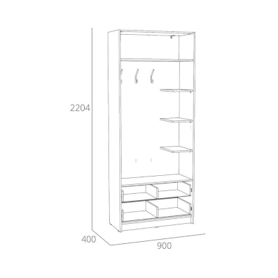 Шкаф оснащен полкой для хранения вещей, которая открывается с помощью газлифтов, которые которые фиксируют положение фасада в открытом виде, а также двумя выдвижными ящиками с шариковыми направляющими, за счет которых они выдвигаются плавно и бесшумно. В комплект модуля входит также мягкий элемент в цвет фасада и позволяет использовать часть шкафа в качестве посадочного места при сборах. За распашной дверкой удобно разместить ключи, документы и прочие принадлежности. Шкаф является модульным, что позволяет комбинировать его с другими шкафами и тумбами из одноименной коллекции. Лаконичный дизайн шкафа гармонично подчеркивается черными ручками. Сборка шкафа универсальна – распашная дверь может крепиться как на правую, так и на левую стороны.