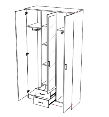 | Наполнение шкафа | выдвижные ящики / зеркало / штанга |