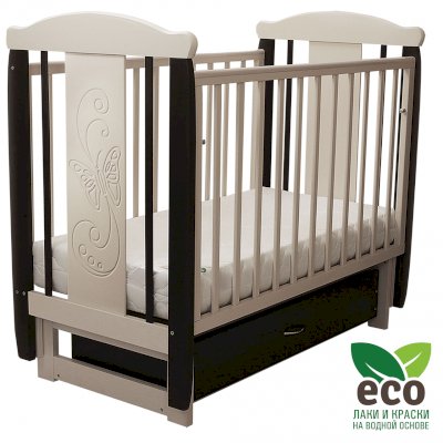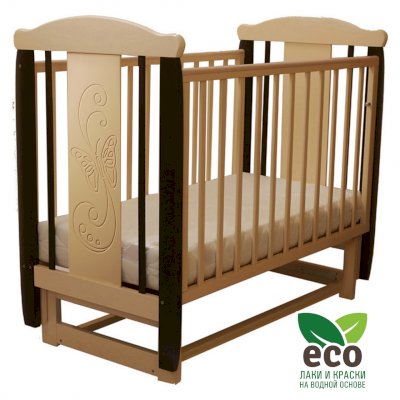 Кроватка декорирована фрезерным рисунком "Бабочка". Уникальные фрезерные рисунки размером от 50 см на обеих спинках.