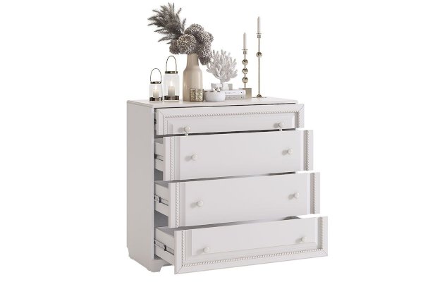 Нежный и воздушный комод «Белла» станет незаменимым элементом интерьера Вашей спальни. Комод «Белла» вместителен и занимает при этом минимум пространства. Столешницу из МДФ украшает фрезеровка. Главной «изюминкой» комода стали декоративные мягкие кисти.