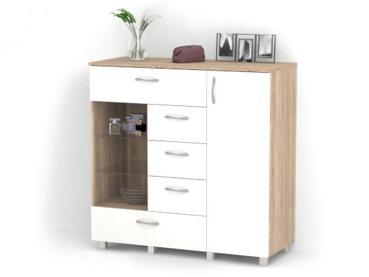 Данное изображение представлено в следующих цветах ЛДСП: корпус - Дуб Сонома, фасады - Белый.