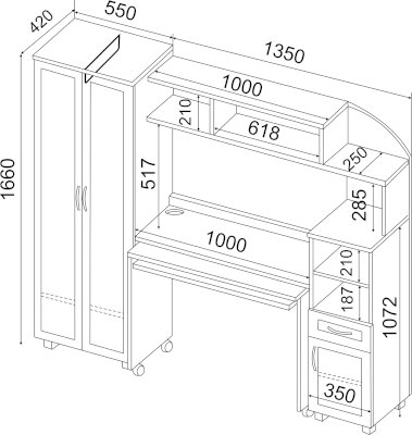 | Комплектация | выдвижная полка под клавиатуру / местодля принтера (техники) / надстройка / ниша под системный блок / тумбы |