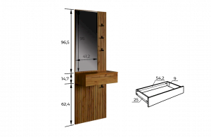 Принт, имитирующий вертикальную фрезеровку, придает зеркалу уникальный и современный вид, добавляя текстуру и глубину. Материал каркаса – ЛДСП, что обеспечивает прочность и долговечность, а также легкость в уходе.