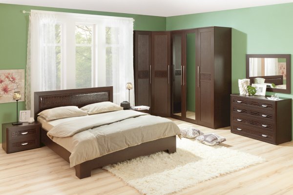 Мебель выпускается из материалов и фурнитуры высокого качества. ЛДСП имеет класс эмиссии Е1, благодаря чему с поверхности мебели нет вредных испарений. Текстура ЛДСП цвета «венге» гармонично сочетается с экокожей «caiman темный», а также накладками МДФ в цвет корпуса. В изготовлении корпуса применяется ЛДСП с толщиной 16 и 25 мм. Образ элегантной мебели актуален для интерьера в классическом  или современном стиле.