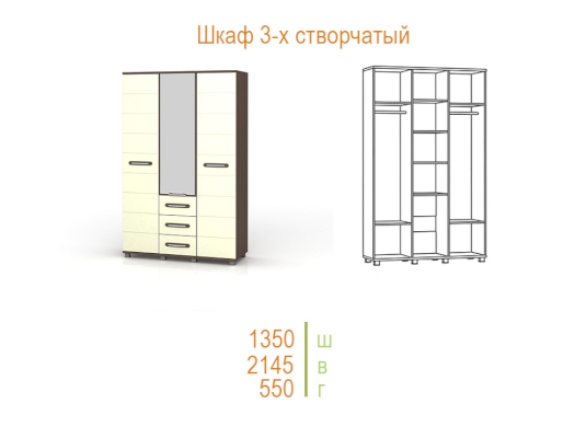 Шкаф 3-х створчатый Инфинити (SM Мебель)