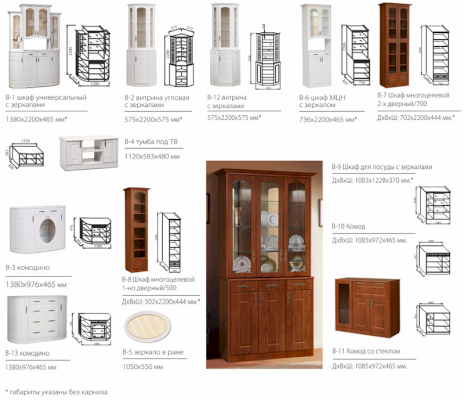 Модули В-9 и В-10/В-11 образуют сервант.