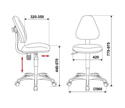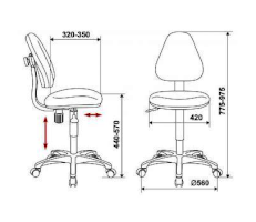 Спинка пружинит и перемещается вверх-вниз по опоре