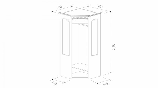 • Объем: ДхВхШ: 700х700х2100х420 мм
