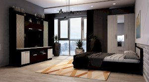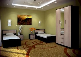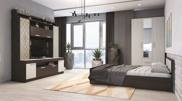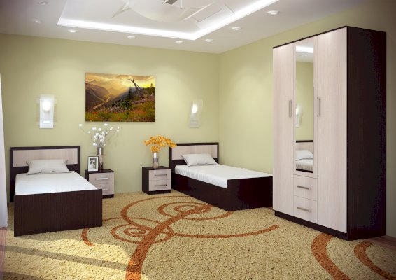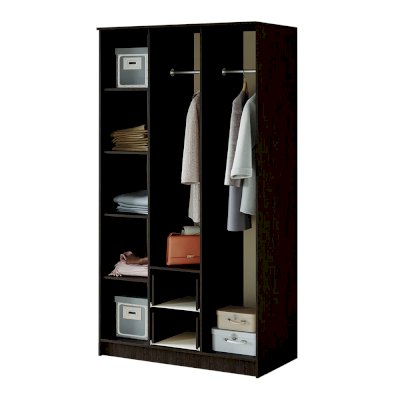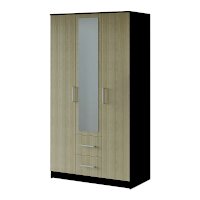 Красивая классическая модель трёхстворчатого шкафа Фиеста прекрасно впишется в интерьер спальни или гостиной. Центральная створка у модели – зеркальная, под ней находятся два выкатных ящика. Внутренняя комплектация состоит из отделений с хромированными штангами и зоны с полками для хранения трикотажа или белья. Шкаф выполнен в комбинации цветов венге и лоредо.