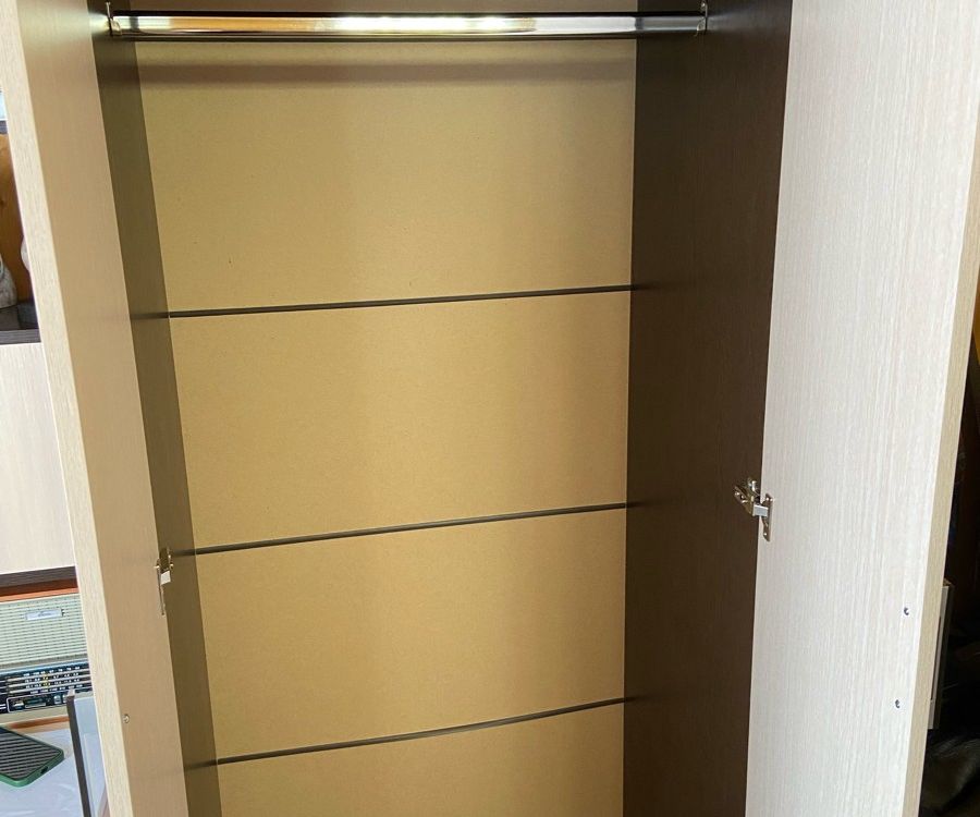 Дно шкафа не выдерживает больших весов, поэтому шкаф больше походит только для хранения верхней одежды. Задняя стенка состоит из нескольких мелких тонких фанер.