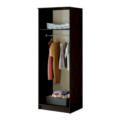 Лаконичная модель двухстворчатого шкафа Фиеста справится с размещением небольшого гардероба. При этом модель содержит достаточно вместительную зону с хромированной штангой для верхней одежды или одежды на вешалках, а также верхнее и нижнее отделение для хранения вещей. Изделие изготовлено из высококачественной ЛДСП в классическом сочетании цветов венге и лоредо.