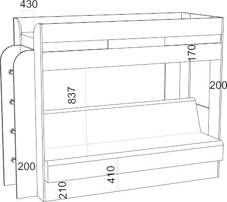 Кровать двухъярусная с диваном. Уникальное решение для детской или подростковой комнаты. Диван на пружинном блоке, в собранном виде, только закрепить. Механизм - Книжка.