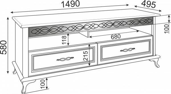 Предусмотрено хранение техники (приставка для телевизора)