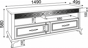 Длина ниши под телевизор, см 149
