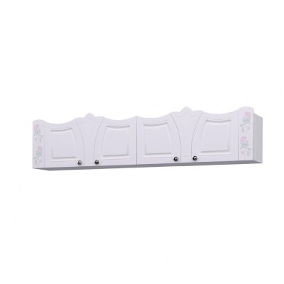 Декоративные приемы: Фрезеровка на фасадах. Ультрафиолетовая фотопечать. Занавески входят в комплект, крепятся на липы к стеклу. Ткань Interio (цвет «розовый», тип ткани «вуаль»).
