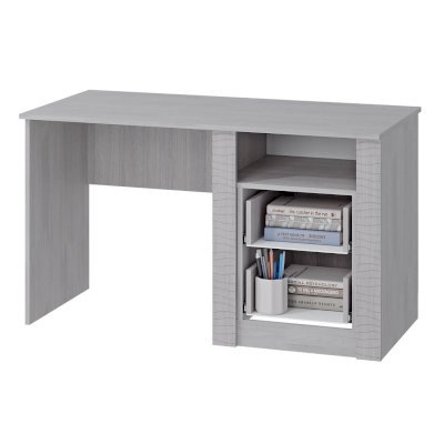 Стильный письменный стол Монако станет любимым местом для работы или учебы. Модель выполнена из высококачественной ЛДСП в цвеет ясень белый. Фасады встроенной тумбы имеют отделку из МДФ. Помимо вместительной столешницы, в столе есть два выдвижных ящика и открытая ниша для хранения всех необходимых вещей.