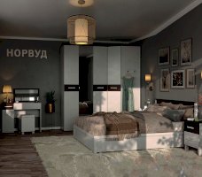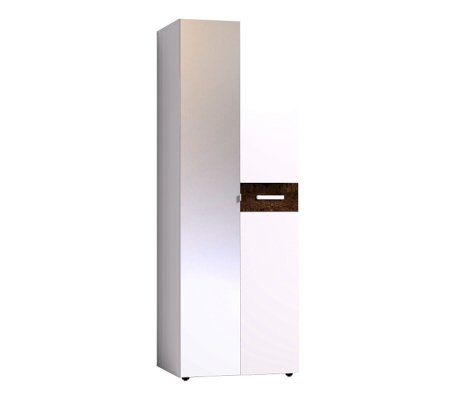 Двухстворчатый Норвуд 54 Шкаф для одежды прекрасно подойдет для хранения одежды и белья в спальне. Глухой белый фасад модуля декорирован контрастной брашированной вставкой и светлой ручкой из массива. Зеркальный фасад декорирован металлической ручкой-скобой. Внутреннее наполнение модуля — стационарная штанга длиной 757 мм и две полки.