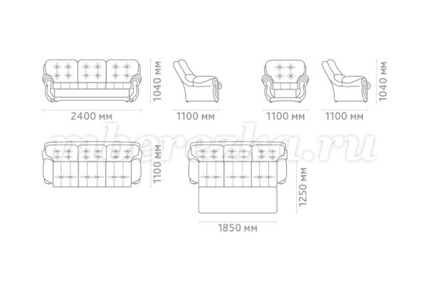 Размеры дивана : 2400*1100*1040 мм (длина*глубина*высота)