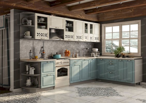 Хотите готовить и проводить время на кухне с удовольствием? Укомплектуйте помещение красивой и удобной мебелью — закажите гарнитур «Ампир»! Комплект эстетичен и функционален. В него входят все необходимые для создания идеальных условий элементы. Холодные оттенки поддерживают праздничное, романтическое настроение. Немного гламура в обстановку вносят прорезные орнаменты на дверцах подвесных шкафчиков.