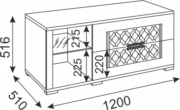 Предусмотрено хранение техники (приставка для телевизора) / дисков