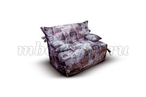Недорогой малогабаритный диван. Чехол в светлых оттенках, с завязками контрастного цвета. Его можно использовать в качестве покрывала для кровати, в которую миниатюрный диван превращается в разложенном виде. По мере загрязнения чехол можно стирать – он выполнен из тканей, устойчивых к механическим воздействиям и выцветанию, и долгие годы не потеряет свежести внешнего вида.