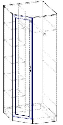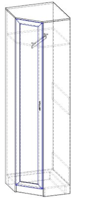 Шкаф распашной угловой 1 дверный со штангой и полками 520