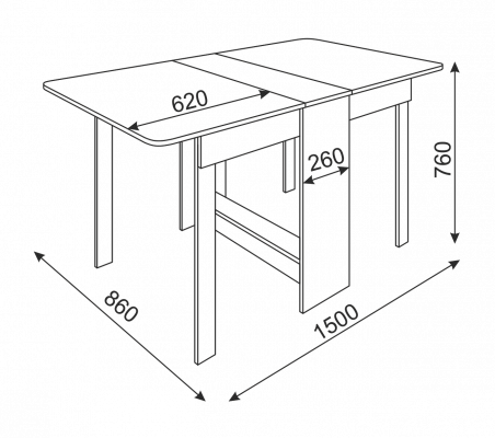 Длина разложенного столика, мм 1500