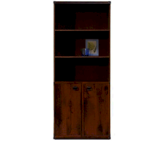 Шкаф разделен на 2 отделения: верхнее –открытое отделение с полками, нижнее – отделение за распашными дверями, за которыми расположена 1 полка
