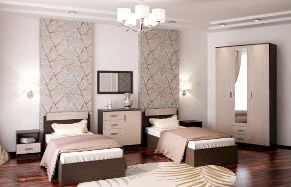Модульная система для спальни "София" - это модульная программа для спальни, имеющая в своем составе большой выбор элементов для грамотного составления спального набора. Фасады светлых декоров с комбинируются с тёмным корпусом.