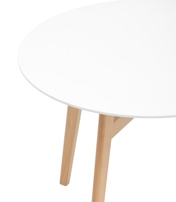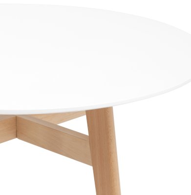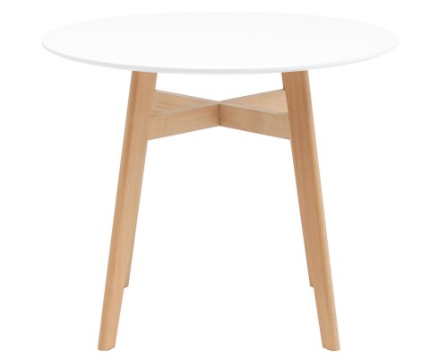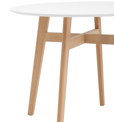 Оригинальный стол в современном стиле станет прекрасным дополнением кухни или обеденной зоны. Круглая столешница выполнена из МДФ. Ножки стола изготовлены из массива дерева.