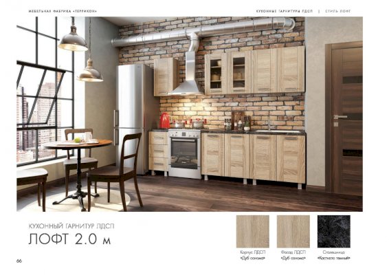 Для тех, кому по душе чердачная романтика, представлен кухонный гарнитур «Лофт». Искусная стилизация под натуральную древесину отлично сочетается с большими окнами, отделкой из кирпича и камня, не крашенными металлическими трубами. Несмотря на внешнюю простоватость, комплект не перегружает интерьер, напротив, он делает обстановку раскрепощенной и ненавязчивой.