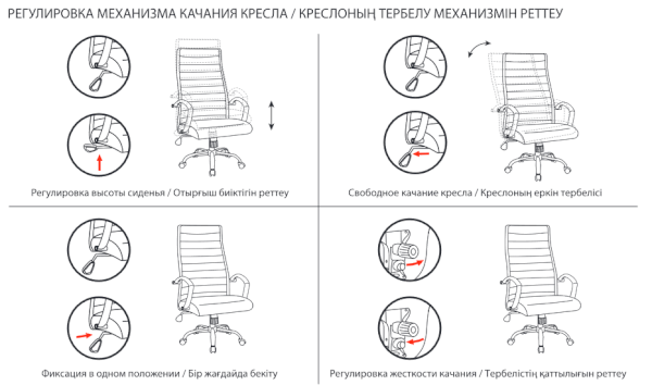 Тип механизма кресла: "топ-ган" качание с регулировкой под вес и фиксацией в 1 положении