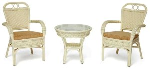 Комплект: стол кофейный со стеклом + 2 кресла + подушки