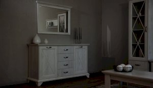 Вместительный комод Лорена в стиле неоклассика создает уютную атмосферу в интерьере гостиной или спальни. Белые фасады с фактурой и рисунком натурального дерева наполняют комнату светом, делают ее просторнее. Металлические ручки цвета состаренного серебра придают изысканность, а фигурные ножки и декоративный профиль крышки подчеркивают стилистику коллекции. В выдвижных ящиках на телескопических направляющих удобно хранить любые предметы одежды и личные вещи. Выполнен из экологичных материалов.