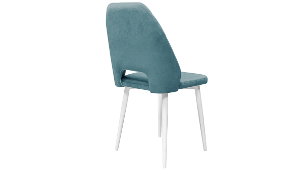 Опора изделия выполнена из металла, окрашена в матовые глубокие цвета «Черный муар» и «Белый муар», которые сейчас очень популярны. На ножках предусмотрены пластиковые заглушки, которые придают стулу дополнительную устойчивость и защищают пол от царапин. Основой мягкого элемента служит фанера и ППУ. Для обивки стула используется велюр DREAM.